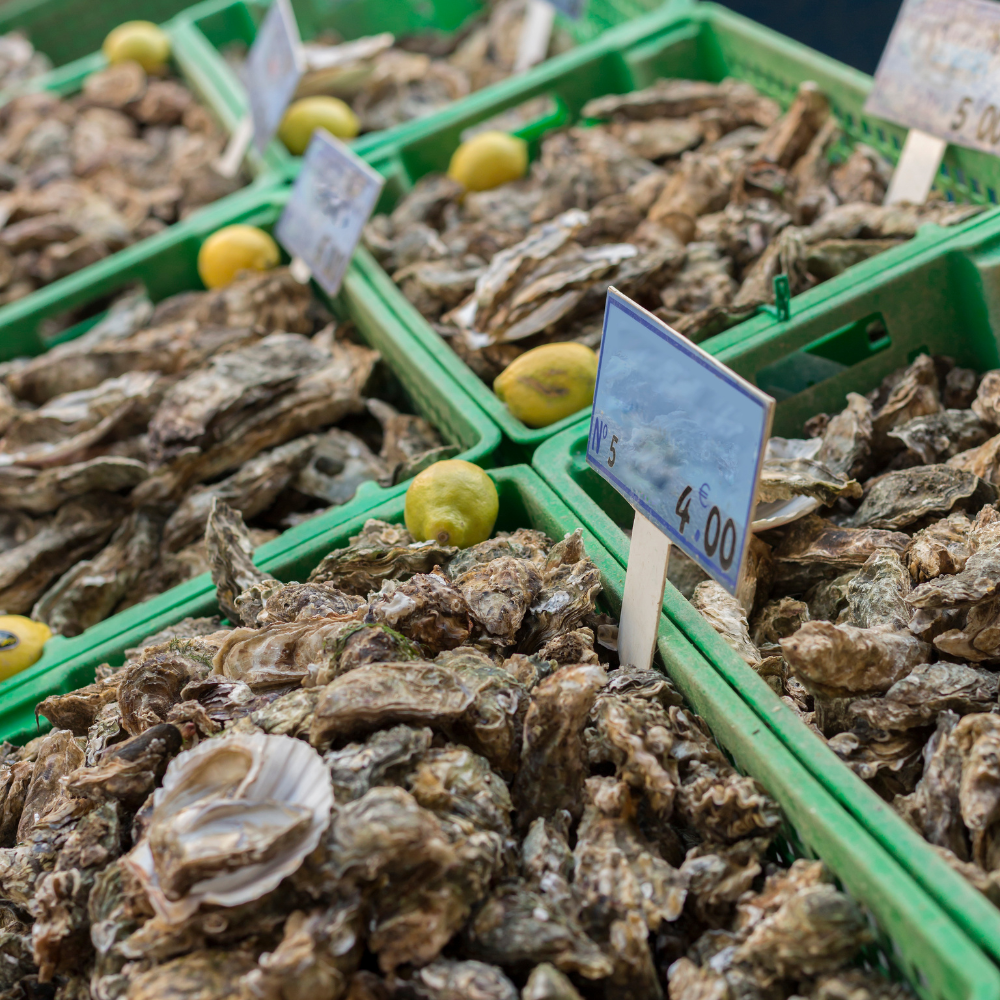 The town itself has a charming, small-town atmosphere with colorful cafรฉs, local bakeries, and seafood restaurants lining the harbor. Enjoy fresh oysters, mussels, or a classic seafood platter, paired with a crisp local cider or white wine, while taking in views of the English Channel.