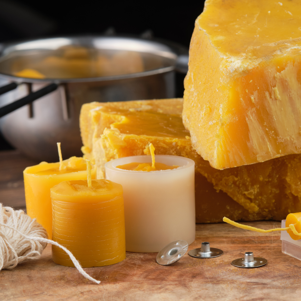 Beeswax (yellow or white beeswax): A natural wax made by bees, known for its subtle honey scent and long burn time, but beeswax is usually more expensive.